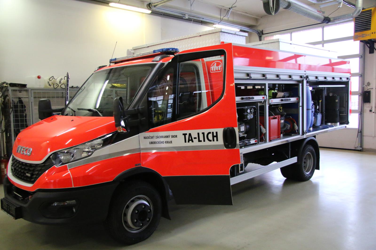 Jablonečtí hasiči včera slavnostně uvedli do provozu nový technický automobil v chemickém provedení pro zdolávání mimořádných událostí s výskytem nebezpečných látek TA-L1CH (Barevné provedení RAL 3024).