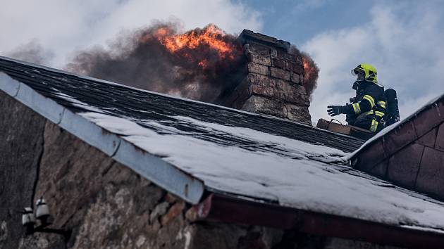 Urychleně odstraňte veškerý hořlavý materiál z blízkosti komínového tělesa. Zavolejte na linku 150 nebo 112. Požár v komíně nikdy nehaste vodou, ale pískem.