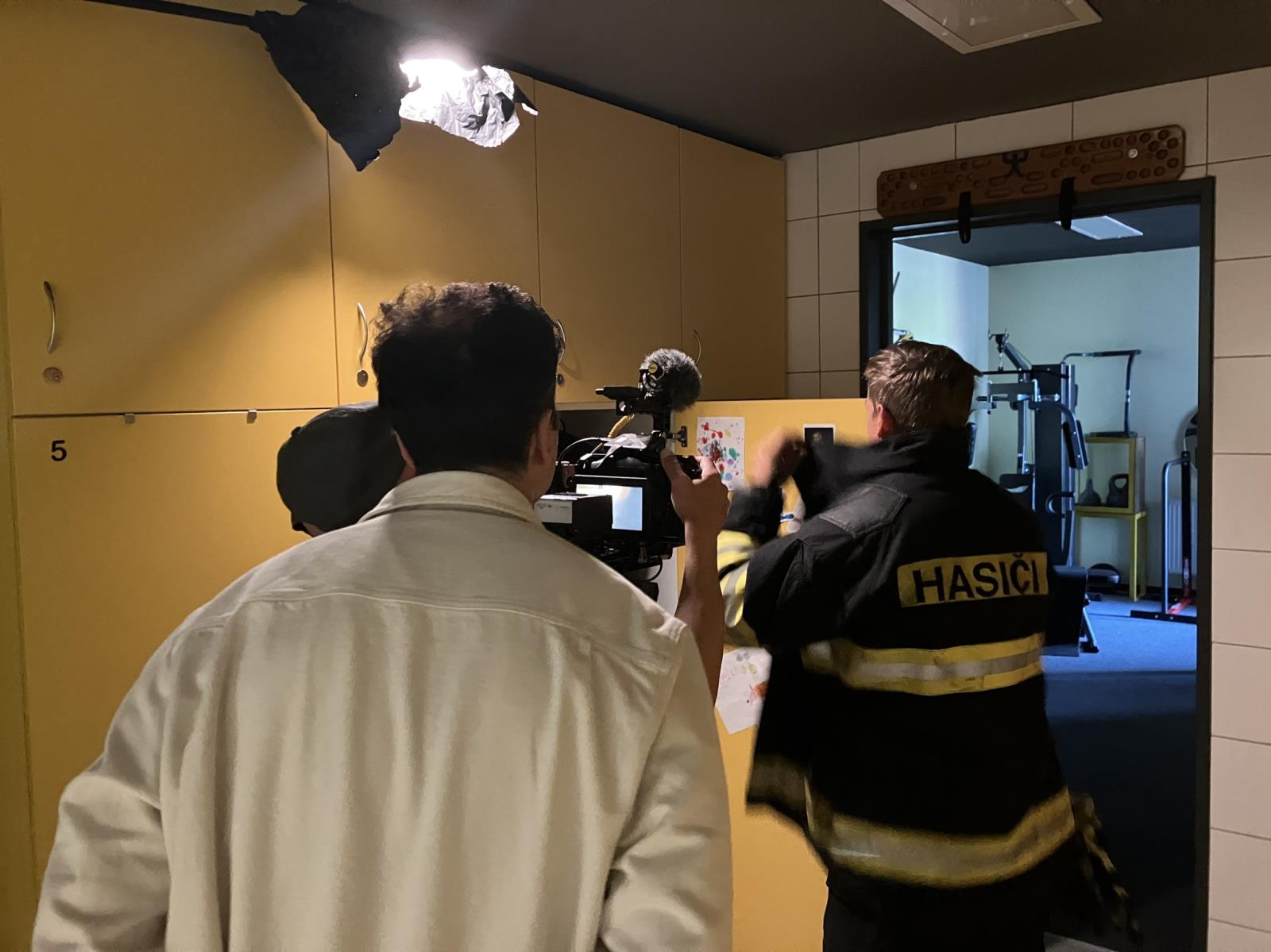 Na tanvaldské stanici profesionálních hasičů řecký štáb natáčel s nstržm. Václavem Vančurou ve čtvrtek 21. září