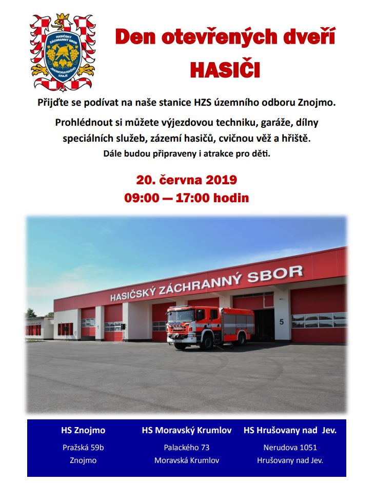 Naše hasičské stanice na Znojemsku otevřeme veřejnosti. Srdečně Vás zveme.
