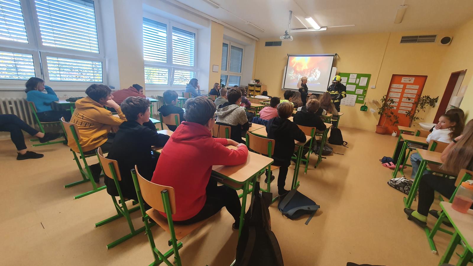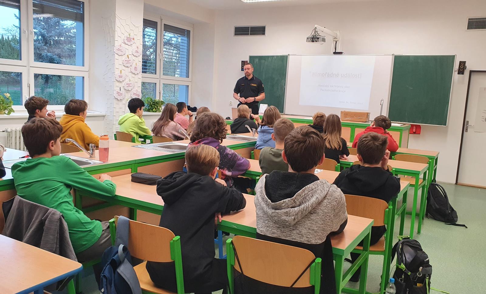 Dnes, v úterý 25. října, jsme již tradičně besedovali s dětmi na ZŠ Smetanova v Přelouči. Když píšeme tradičně, tak myslíme, že do této školy jezdíme opravdu pravidelně, a to 20 let a vždy ve stejný termín, tedy před podzimními prázdninami. Povídáme si s dětmi nad druhém stupni o tom, co dělají hasiči, jak se mají děti zachovat při dopravní nehodě nebo když se vaření doma v kuchyni vymkne z rukou a promění se v požár na plotně. Nebo co udělat při jakékoliv jiné mimořádné události, u které se můžeme ocitnout.
