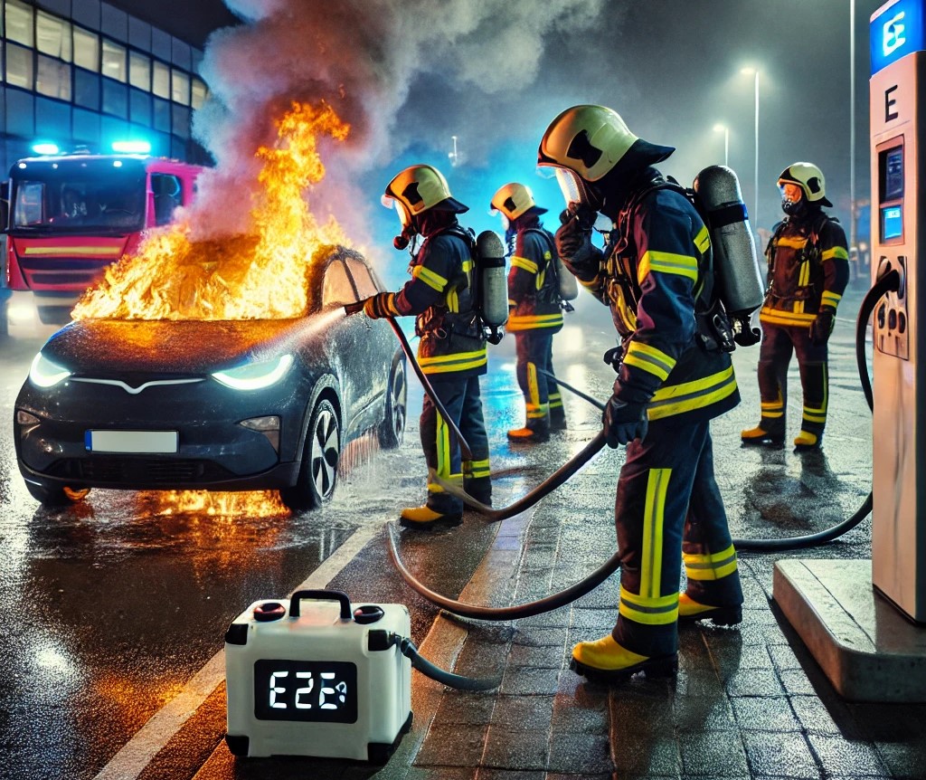 Při požárech elektromobilů hasiči postupují podle standardních zásahových protokolů. Pokud není zasažena baterie, lze požár rychle uhasit podobně jako u vozidel se spalovacím motorem. Jakmile však oheň zasáhne baterii, hašení se stává velmi komplikovaným.