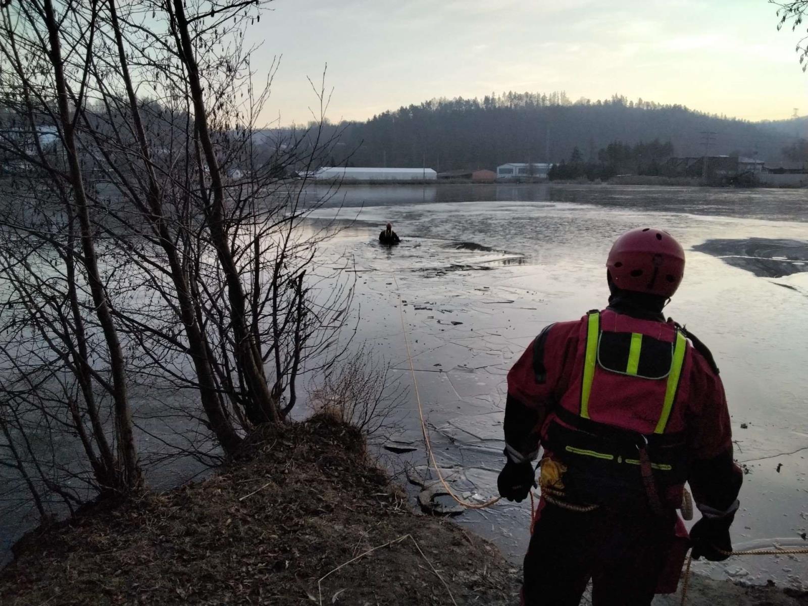 Také občas zachraňujeme psy, kteří se zaběhli na led a nemohou bezpečně zpět. Řešíme rovněž situace, kdy je po proboření do ledové vody v ohrožení lidský život. Zasahujeme i u kuriózních případů, kdy z ledové vody vyprošťujeme potopené automobily.