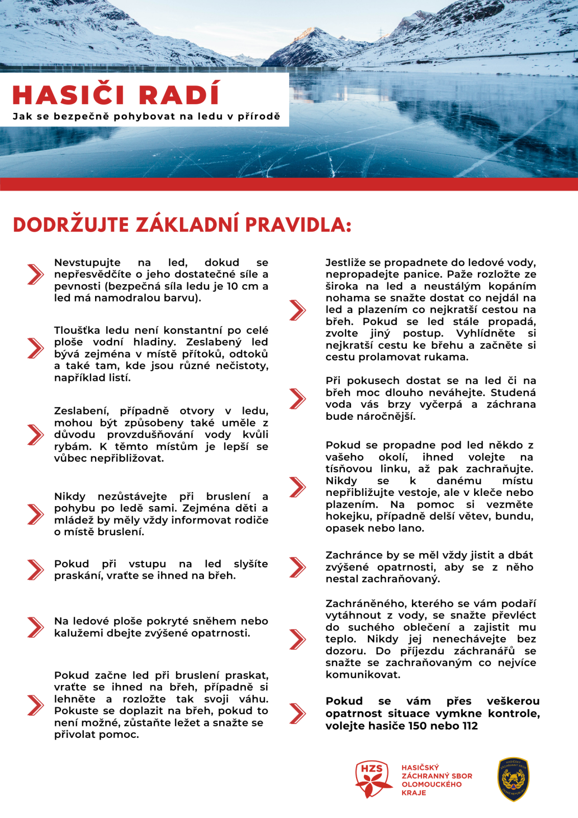 Doporučujeme na něj nyní vstupovat s opatrností. Poučte i své děti a nenechávejte je na ledě bez dozoru. V případě, že se dostanete do svízelné či nebezpečné situace, přinášíme vám pár rad, jak reagovat: