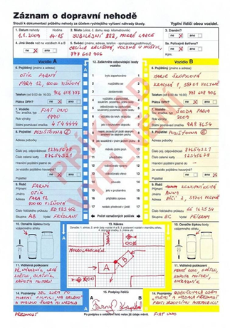 Autor fotografií: náhledový obrázek HZS Karlovarského kraje -poskytnuto HZS ČR, Vzor vyplněného euroformuláře / Zdroj: Ministerstvo dopravy