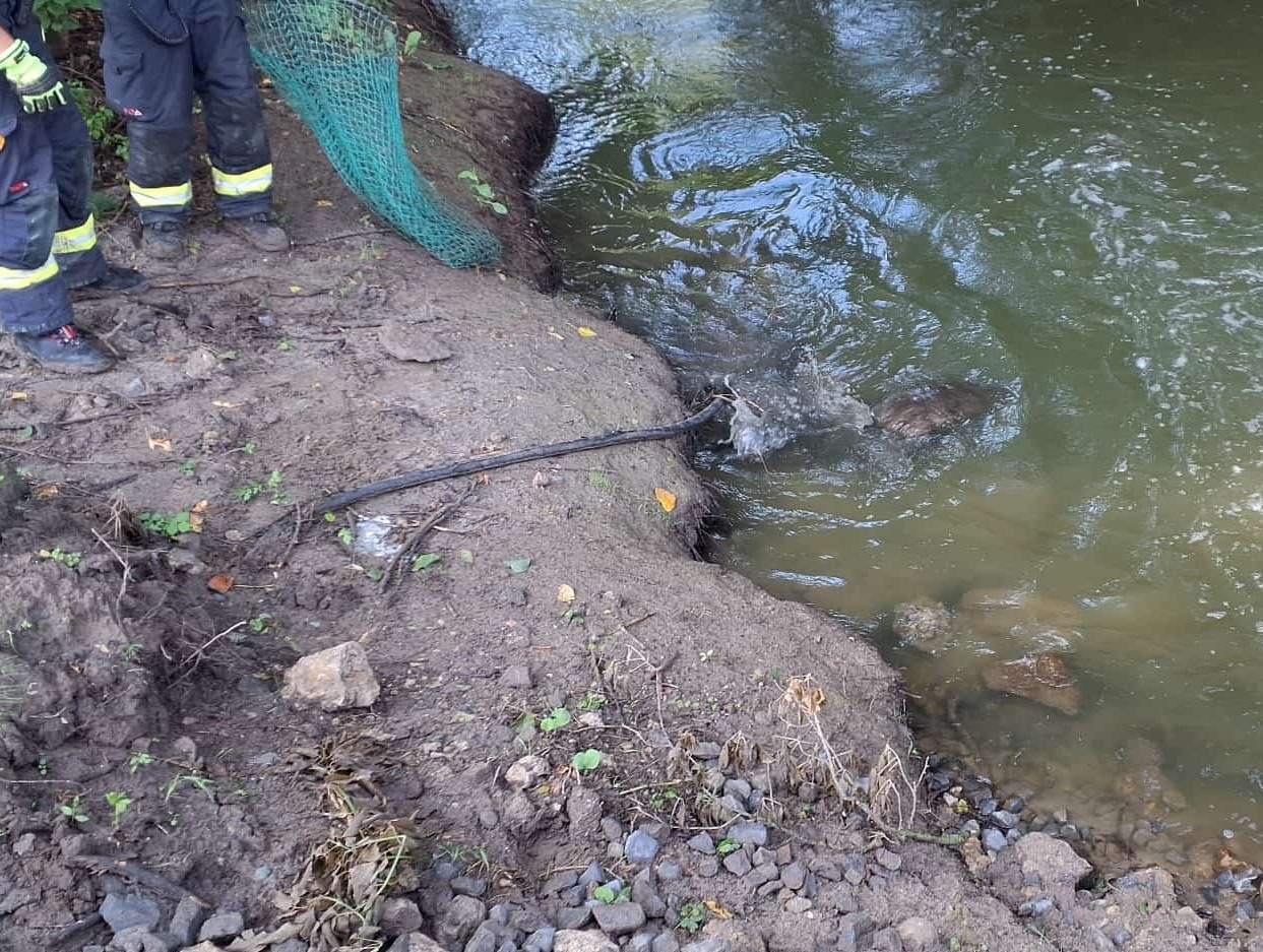 Po příjezdu na místo hasiči zjistili, že pomoc potřebuje bobr, který se zřejmě během noci dostal do výkopu a nedokázal se sám vyšplhat zpět.