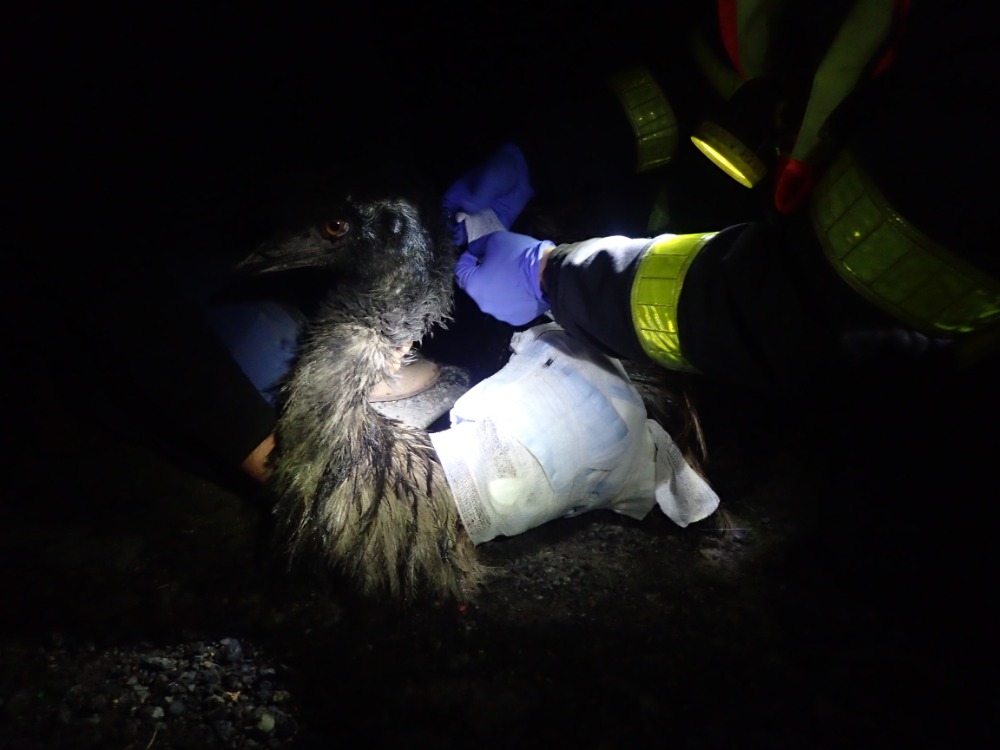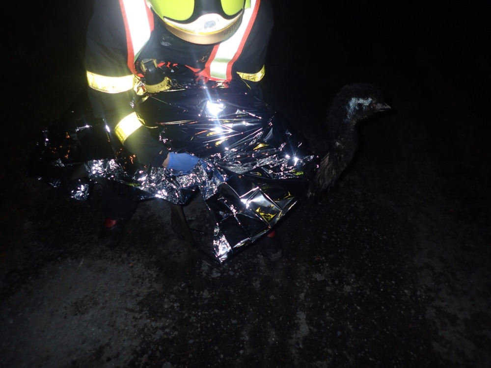 Dvě jednotky hasičů se zapojily v pátek 9.11.2018 večer do odchytu dospělého pštrosa, který utekl z menší farmy na Třinecku (okres Frýdek-Místek). Zhruba po půlhodině jej hasiči společně s policisty ČR chytili, hasiči mu ještě museli opatrně - za asistence majitele - ošetřit ošklivé zranění na krku.