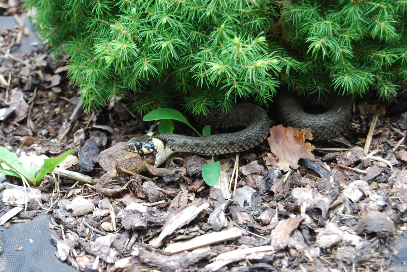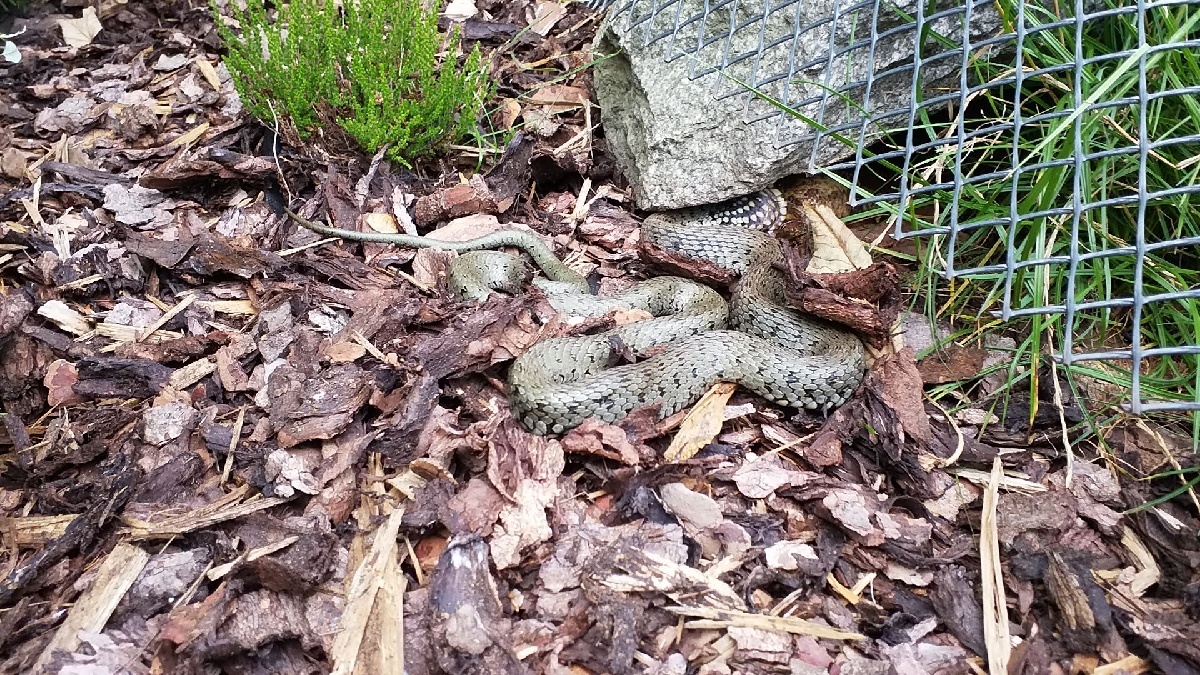 Užovka obojková využila ve čtvrtek večer teplého počasí a slunila se. Ostatně, kdo by se neslunil, když bylo opravdu tak krásně...