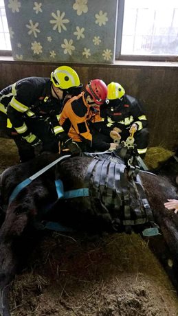 Velitel zásahu proto rozhodl o využití speciální záchranné sítě. Tu mají profesionální hasiči k dispozici právě pro podobné situace při záchraně velkých hospodářských zvířat. Síť umožňuje zvíře zvednout rovnoměrně a šetrně, aniž by vznikal tlak na jednotlivé části těla.