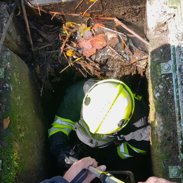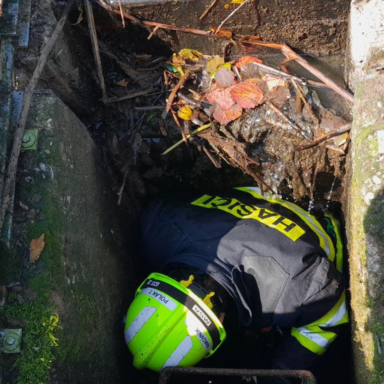 Neobvyklý zásah rakovnických hasičů. Osm kachen uvízlo ve výpusti rybníka v Panoším Újezdě a bez pomoci by neměly šanci na únik.
