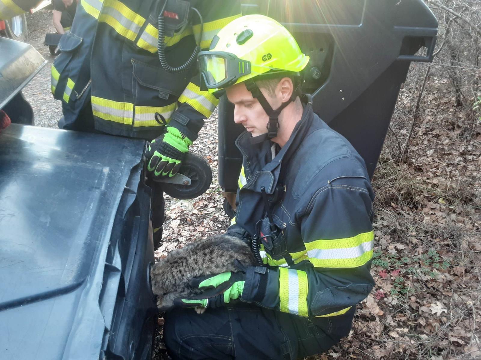 Do Kletečné na Pelhřimovsku vyjeli profesionální hasiči z humpolecké stanice v úterý 4. listopadu krátce po půl čtvrté odpoledne. Podle velitele zásahu se jednalo o nahlášenou záchranu domácího zvířete. Kočka zůstala zaklíněná hlavou v otvoru kontejneru na komunální odpad a nebyla schopna sama vycouvat zpět.