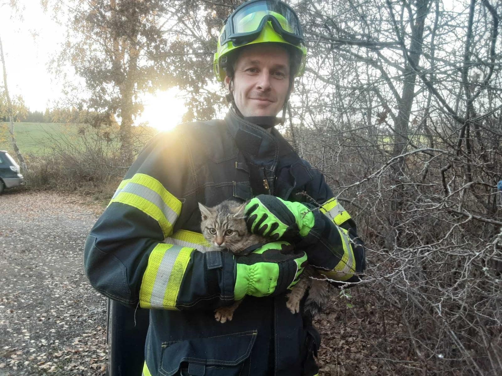 Hasiči vysvobodili zaklíněnou kočku. Zásah trval jen několik minut
