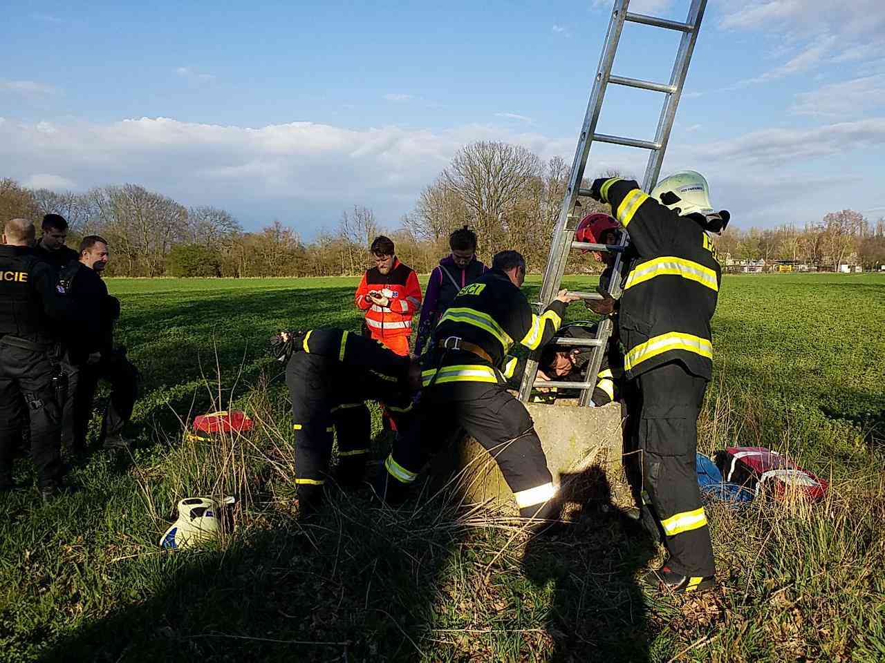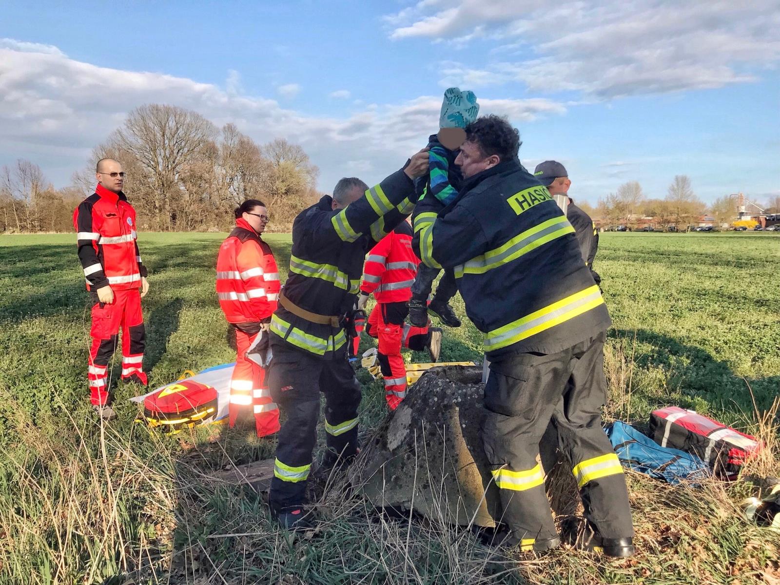 Na místo ihned vyjeli hasiči i zdravotnická záchranná služba. Dítě spadlo do zhruba čtyřmetrové hloubky skruže na poli od zavlažovacího zařízení.