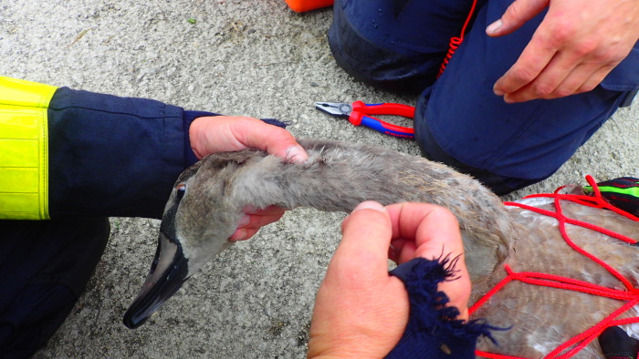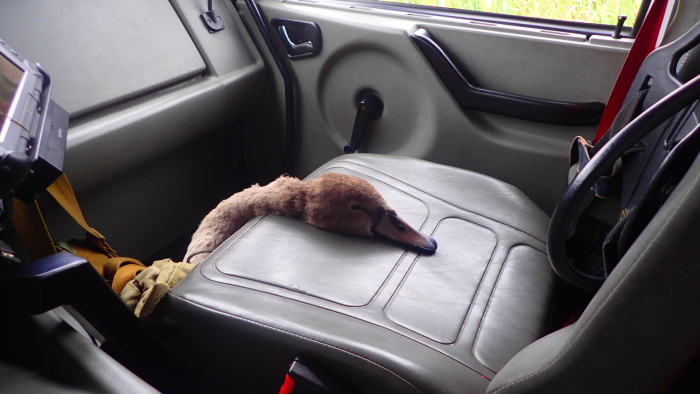 Tentokrát šlo o záchranu většího labutího mláděte, poraněného rybářským háčkem a zamotaného do rybářského vlasce. Už na začátku...