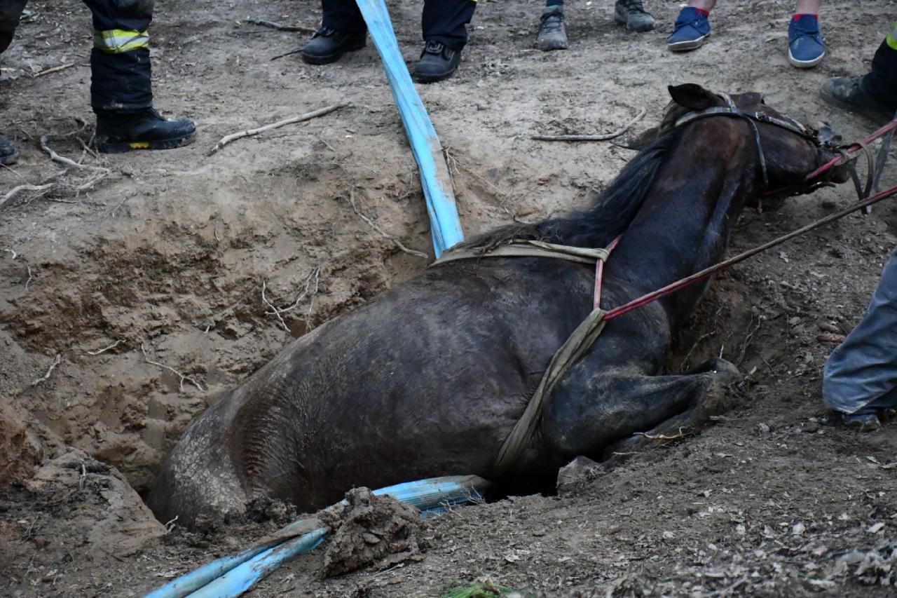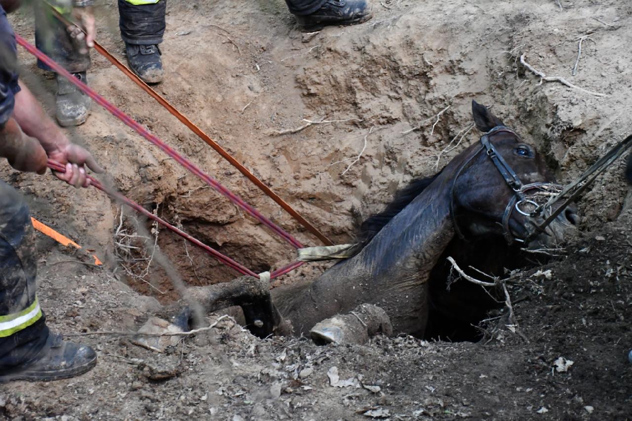 Vzhledem k tomu, že zásah probíhal v blízkosti železniční trati, vyžádal velitel zásahu dočasné omezení rychlosti pro projíždějící vlaky. Hasiči nejprve za pomoci ženijního nářadí zvětšili prohlubeň. Při tom byl kůň chráněn zásahovými kabáty. Po necelých třech hodinách fyzicky velmi náročného zásahu byl kůň pomocí několika lan a popruhů vytažen na povrch.