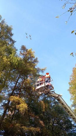 V neděli odpoledne zasahovali profesionální hasiči z centrální stanice Trutnov u neobvyklého případu. Papoušek, který uletěl svému majiteli, uvízl vysoko v koruně stromu. Zamotal se do svého vodítka a bez pomoci by nepřežil. Díky hasičům a spolupráci s majitelem se podařilo zvíře bezpečně zachránit.
