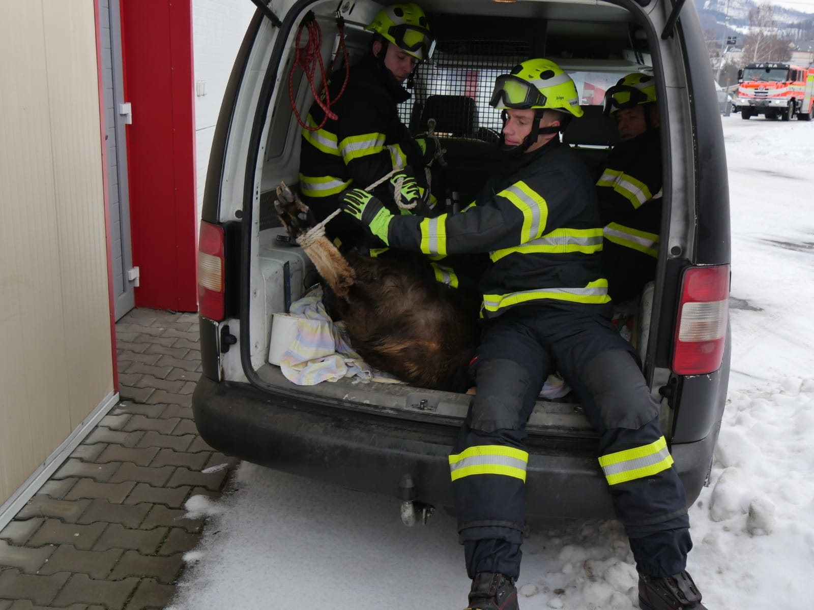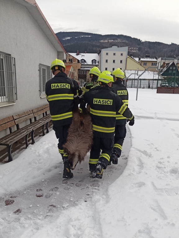 Neobvyklý tahra himálajský se zatoulal do sklepa panelového domu v Jeseníku. Hasiči jej odchytili, zajistili bezpečnost zvířete a po několikatýdenním pátrání pomohli vrátit jej zpět k majiteli v Rychlebských horách.