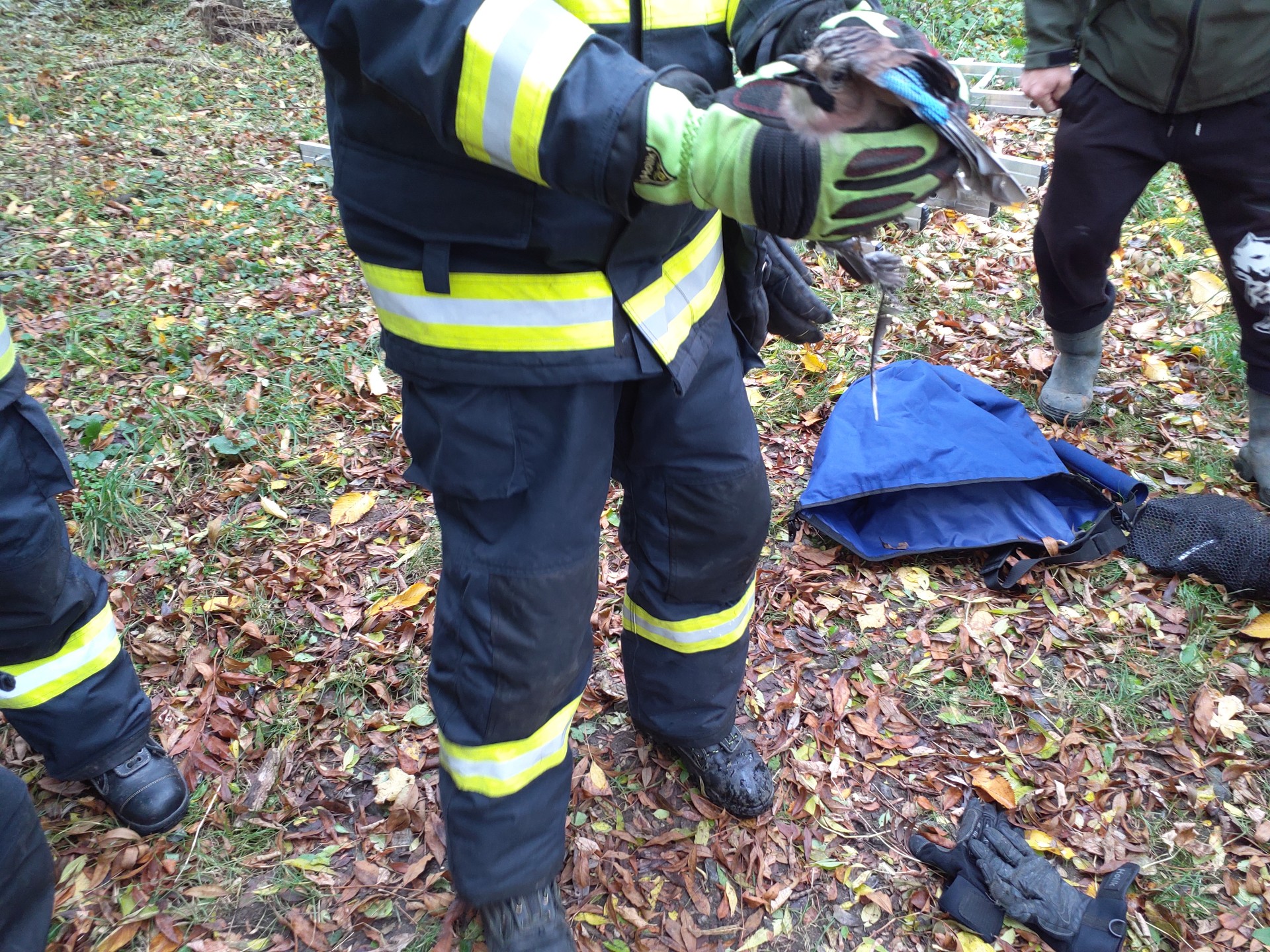 Hasiči zachraňovali sojku zamotanou do pletiva