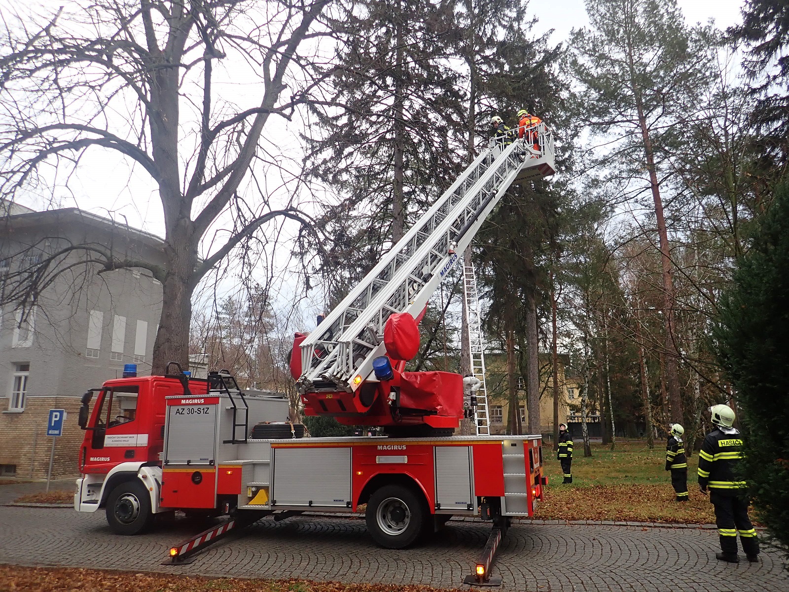 V pátek 28. 12. 2018 profesionální hasiči zachraňovali od 8:15 hodin kotě ze stromu v areálu psychiatrické léčebny v Kroměříži.