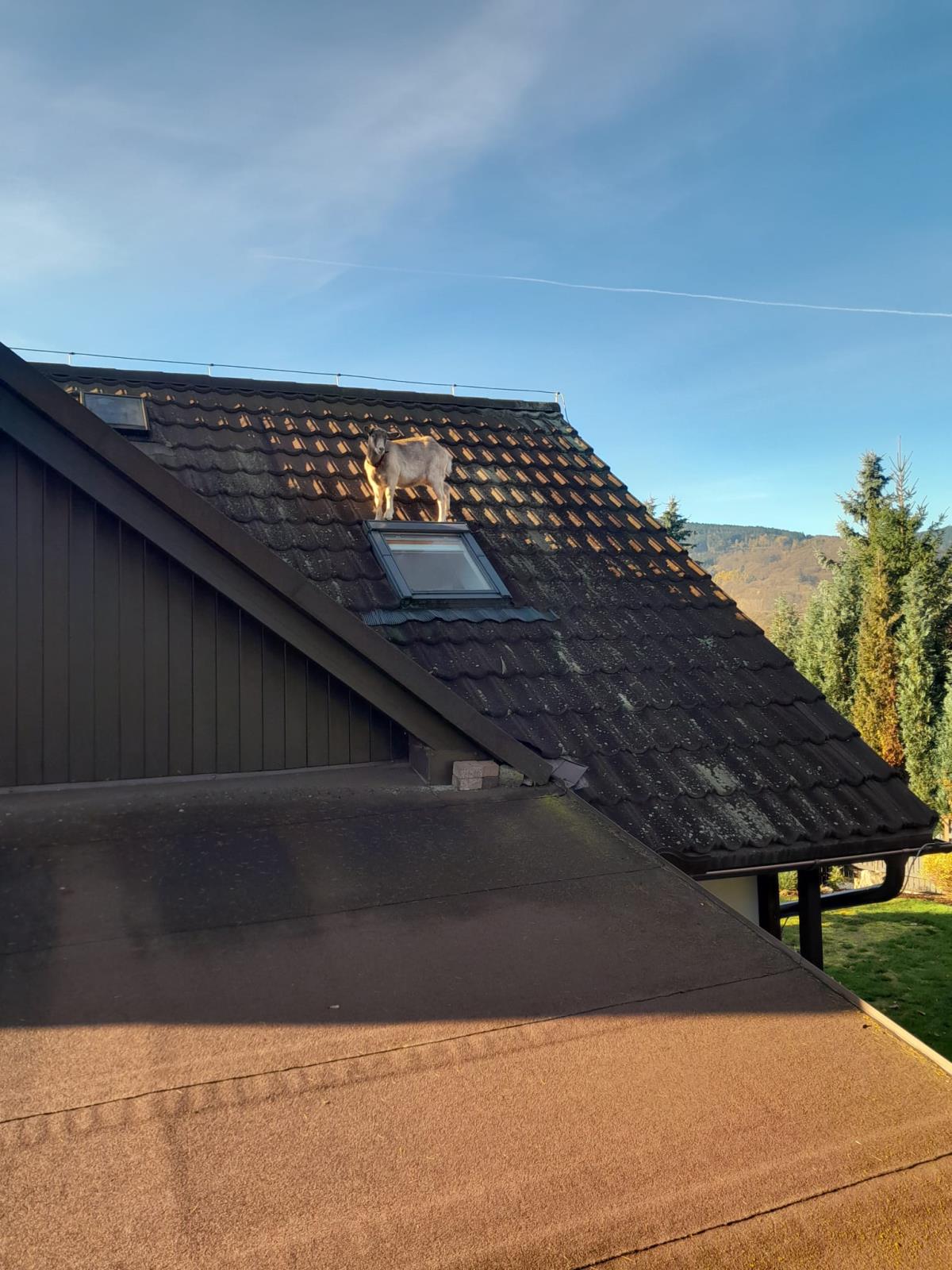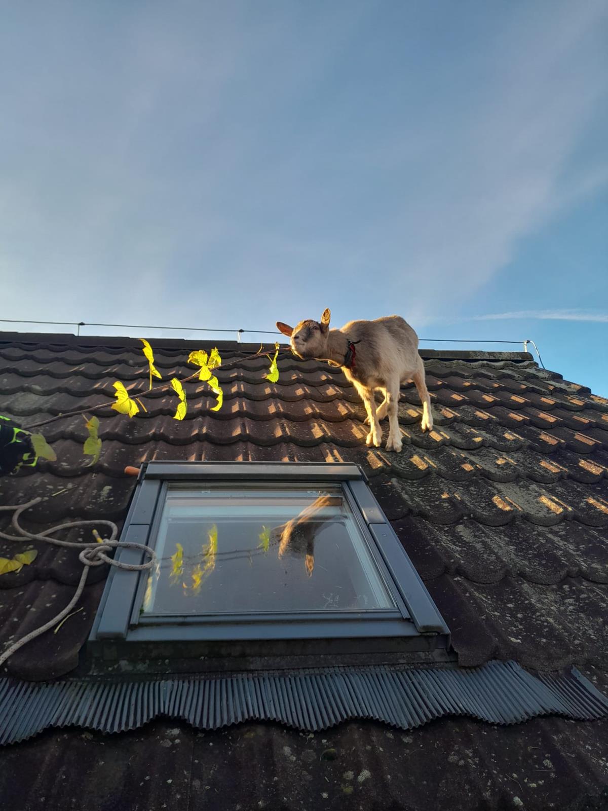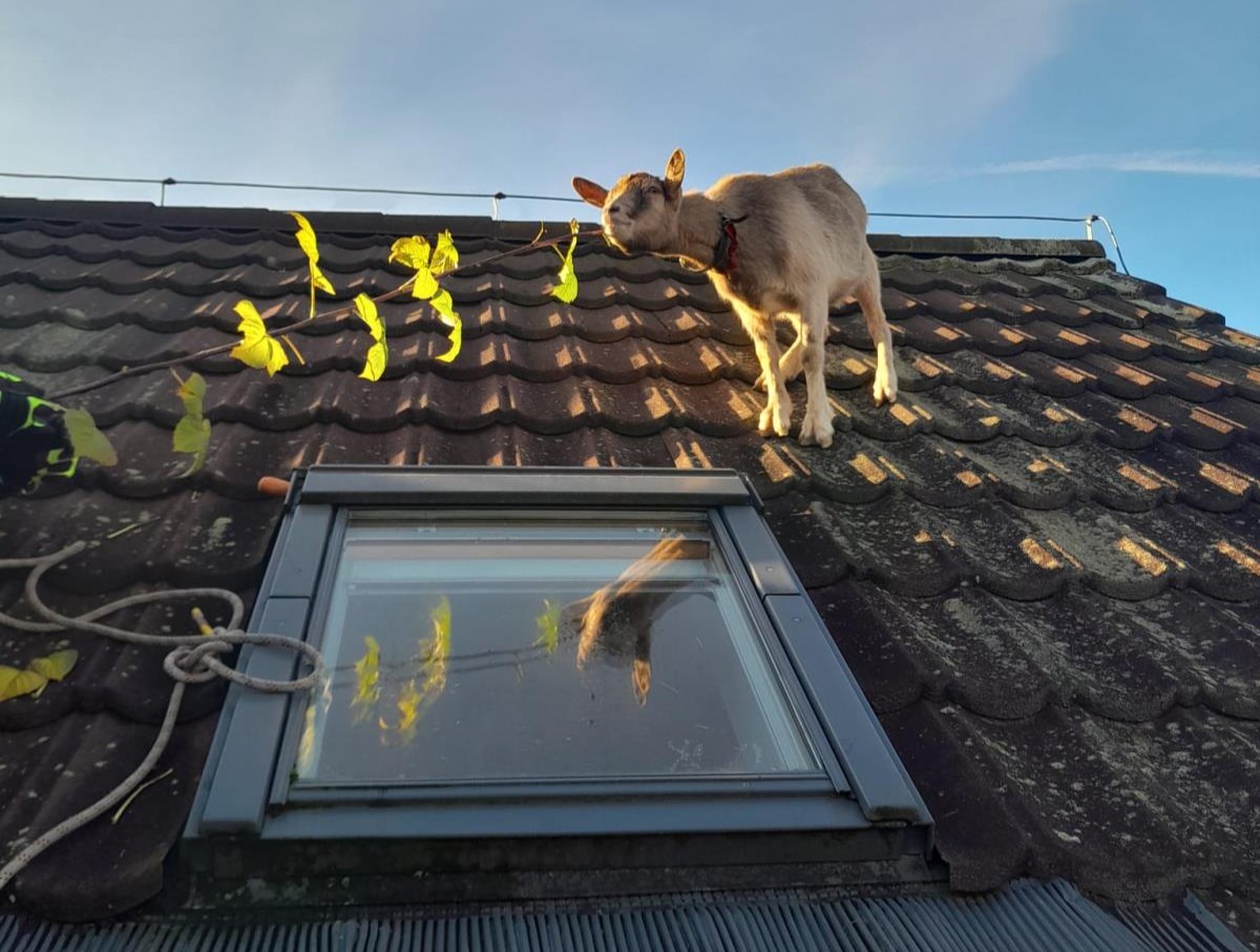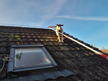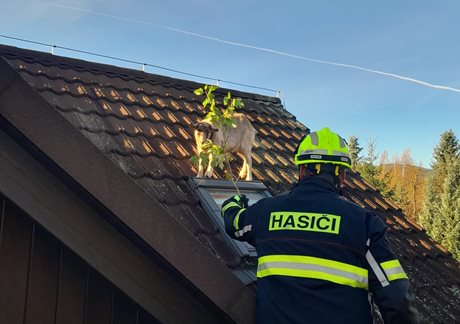 Koza na střeše. Hasiči řešili netradiční záchranu zvířete