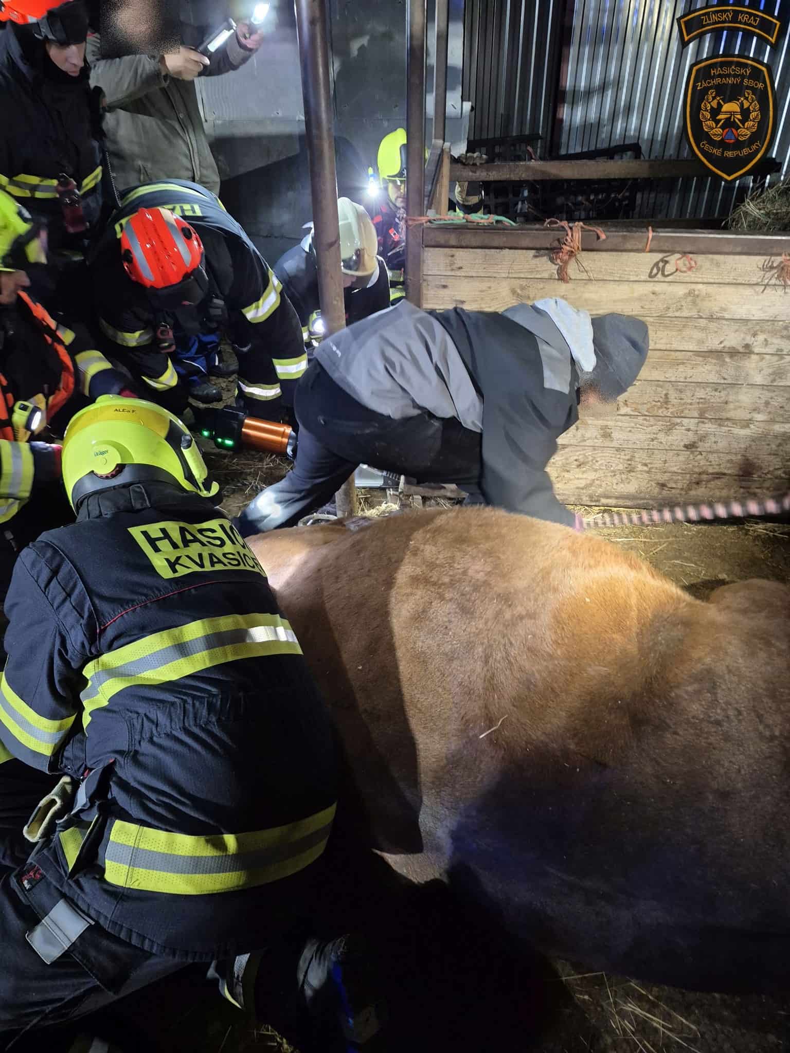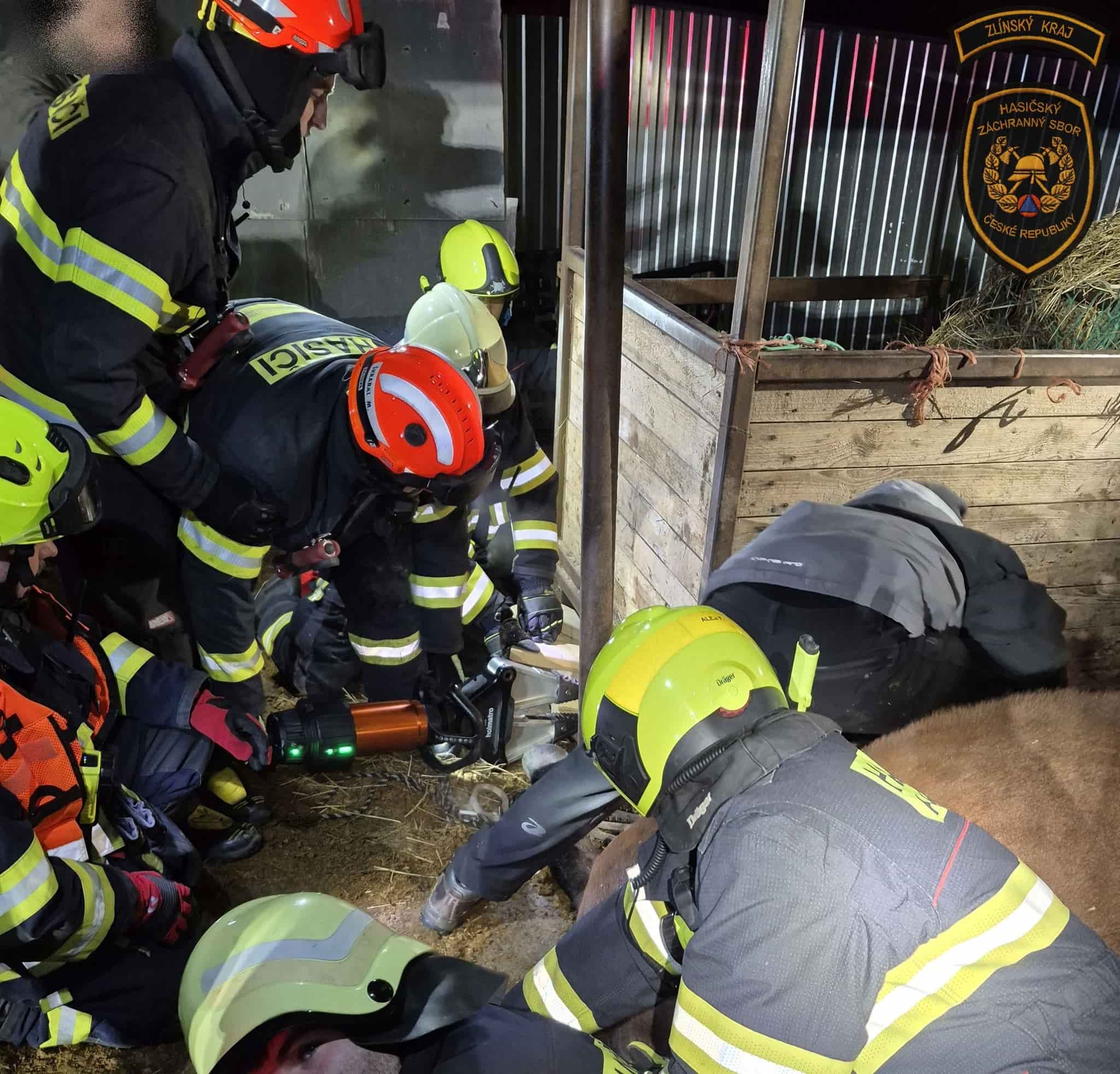 Náročná záchrana koně zaměstnala profesionální i dobrovolné hasiče. Zvíře zůstalo zaklíněné pod krmelcem a hrozilo jeho vážné zranění. Díky koordinovanému postupu všech složek zásahu dopadl případ dobře.
