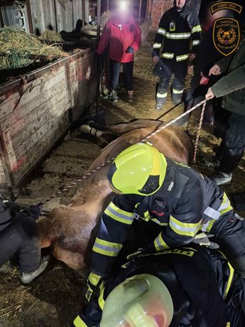 Ve středu 7. ledna 2025 v odpoledních hodinách došlo k nebezpečné situaci v hospodářském objektu, kde se kůň po uklouznutí nemohl vlastními silami postavit. Jedna z jeho končetin zůstala zaklíněná pod krmelcem. Zvíře bylo ve stresu a hrozilo zhoršení jeho zdravotního stavu. Přítomní lidé se mu snažili pomoci sami, avšak bez úspěchu. Situace si vyžádala odborný zásah.
