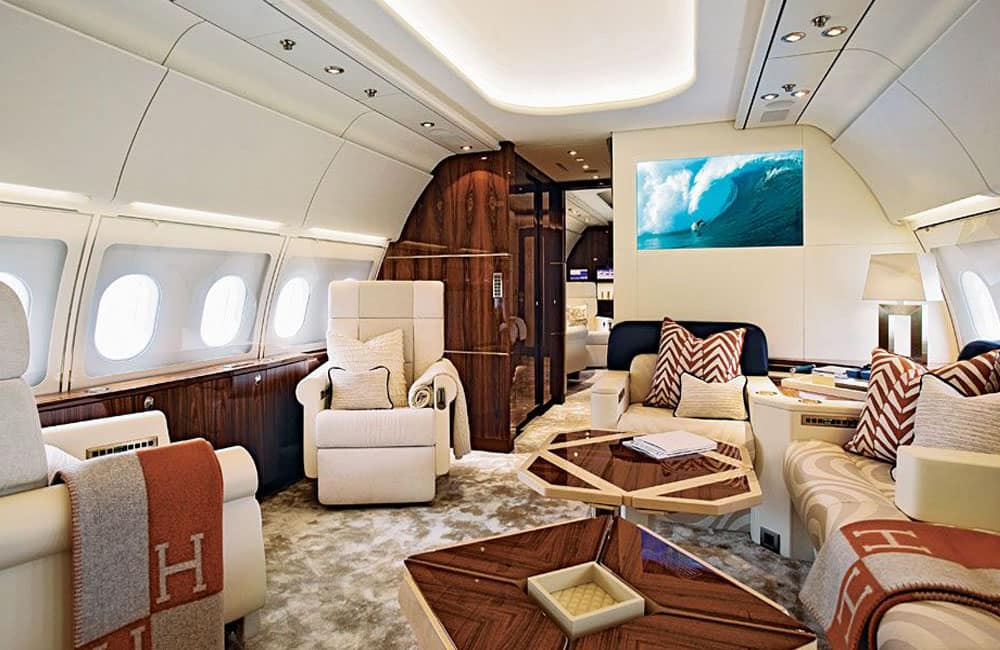 Jet může ubytovat až 30 osob a má plně vybavenou kuchyň - bez kuchyňského koutu. Letadlo je také plně vybaveno banketovou síní a zlatým kováním téměř na všem. K dispozici je také systém protiraketové obrany pro případ, že by se někdo pokusil letadlo sestřelit.
