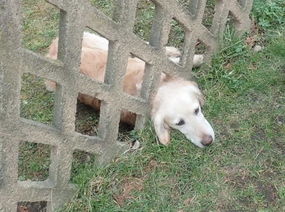 Zcela obyčejná chvíle se během okamžiku změnila v obavy o zdraví domácího mazlíčka. Zlatý retrívr se při pohybu kolem plotu zaklínil hlavou v betonovém otvoru a nemohl se sám vysvobodit. Každý další pokus o vyproštění znamenal riziko zranění, proto majitelé raději přivolali pomoc.