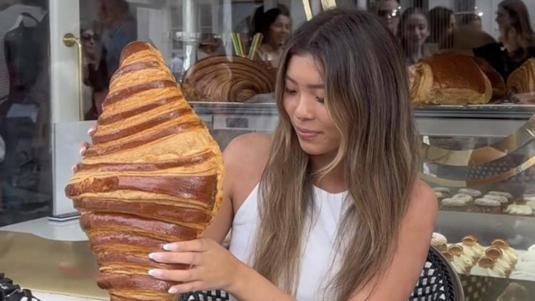 Jak je ukázáno ve videích, jedná se o klasický máslový croissant (dodává se také ve verzi s čokoládovou náplní), který stojí 25 liber a rozhodně daleko přesahuje jednotlivé porce.