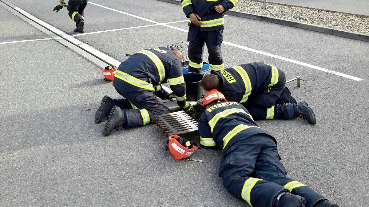 Pátek, 29. května 2020 - Hasiči ze stanice Židlochovice odpoledne zachránili osm káčat, která byla uvězněna v kanálové vpusti v obci Modřice. Jejich matka na ně čekala opodál. K jejich záchraně stačilo nadzvednout jeden z poklopů. Osm káčátek za doprovodu jejich matky odnesli hasiči do přírody.