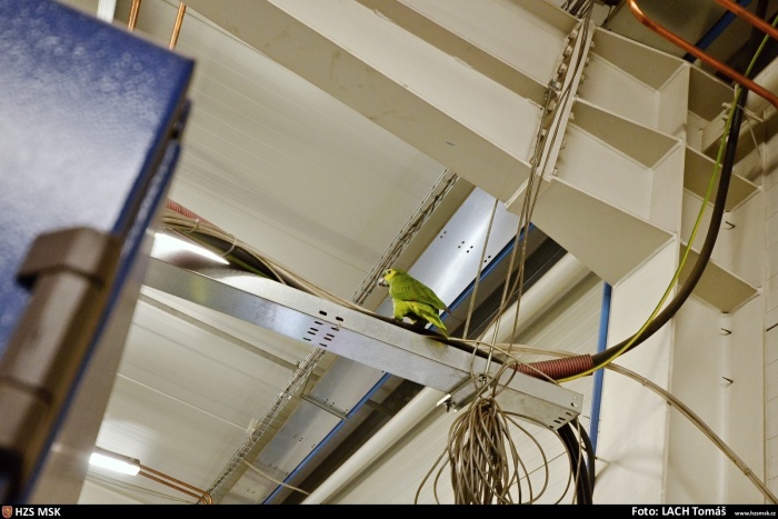 O netradiční zpestření páteční směny zaměstnanců strojírenské firmy, která se v Petřvaldu na Karvinsku zabývá zpracováním plechů, se postaral jak nádherně zbarvený papoušek amazoňan, který vlétl do výrobní haly a usadil se na konstrukci pod střechou, tak profesionální hasiči (HZS MSK) ze stanice Ostrava-Přívoz, kteří byli k odchytu tohoto barevného návštěvníka vysláni v pátek 15.5.2020 po poledni.