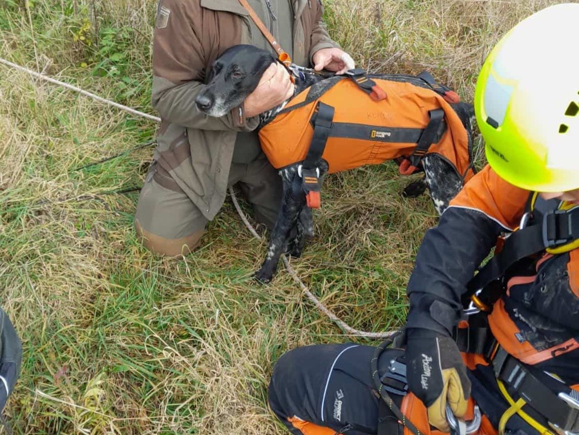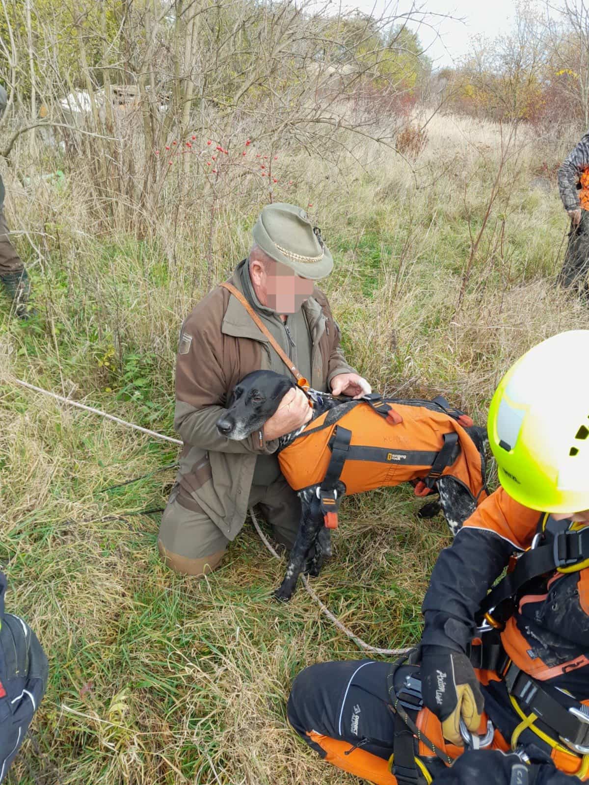 Pád do studny a boj o čas. Hasiči vytáhli vystrašeného psa živého a v pořádku