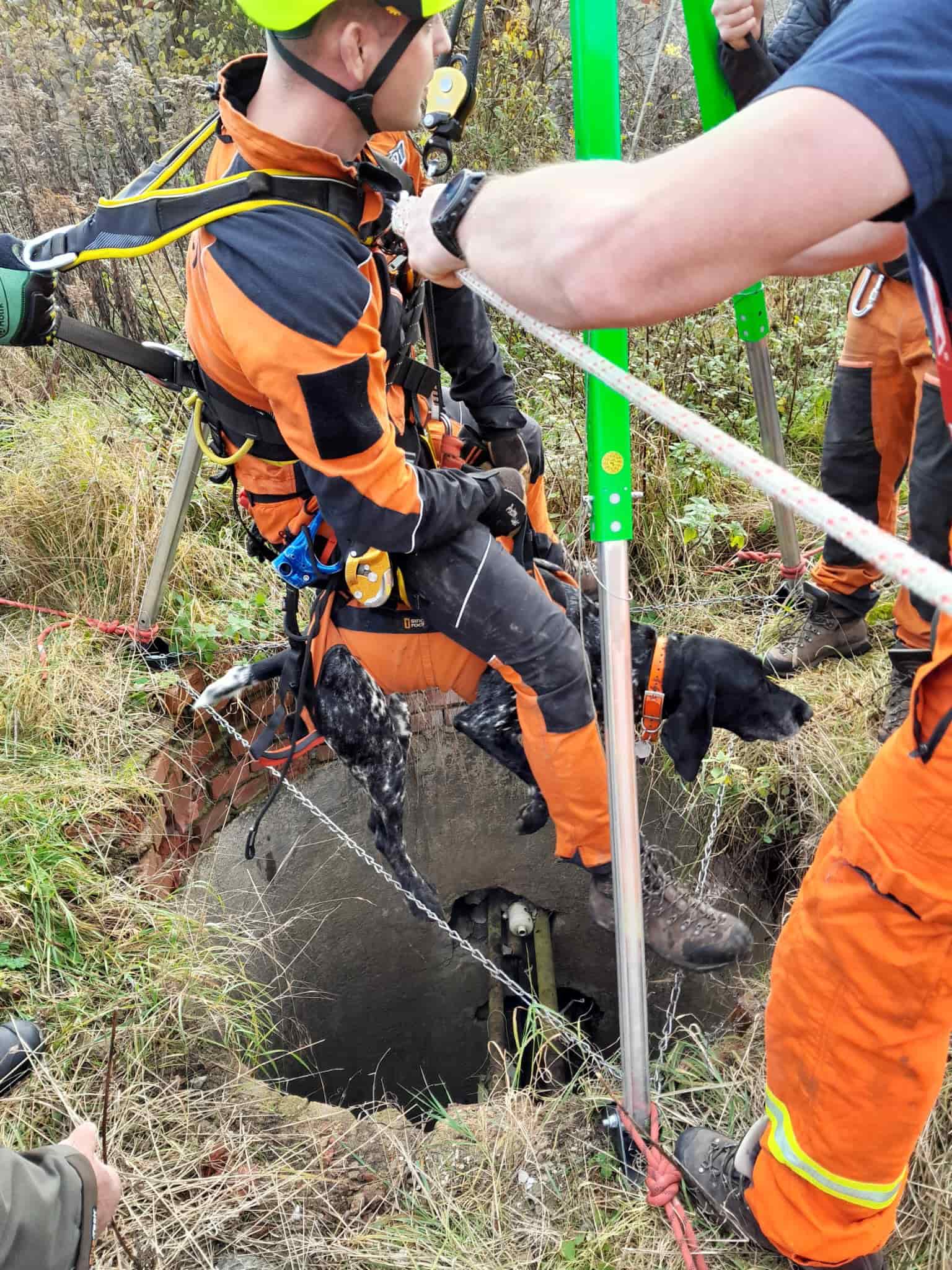 Lezec zvíře zajistil a signál k vytažení přišel během několika vteřin. Ostatní hasiči na povrchu systémem kladek obě těla vytáhli nahoru. Pes byl okamžitě předán majiteli, který celou dobu čekal nahoře. Podle hasičů neutrpěl žádné zranění.