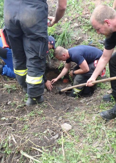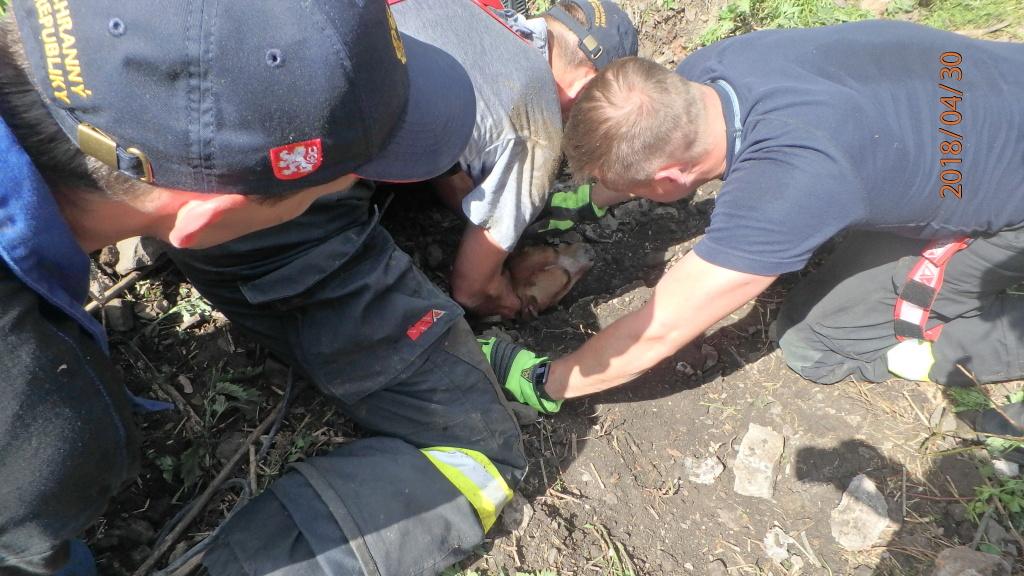 Aby se podařilo psa zachránit, musely začít zasahující jednotky betonovou skruž ručně odhrabávat. Kus betonu potom hasiči rozbili pomocí bouracího kladiva. To už se zatoulaný pes díval na denní světlo a hasiči je opatrně vytáhli ven. Zvídavého průzkumníka pak předaly jednotky do péče majitelům, kteří si zajistili prohlídku u veterináře.