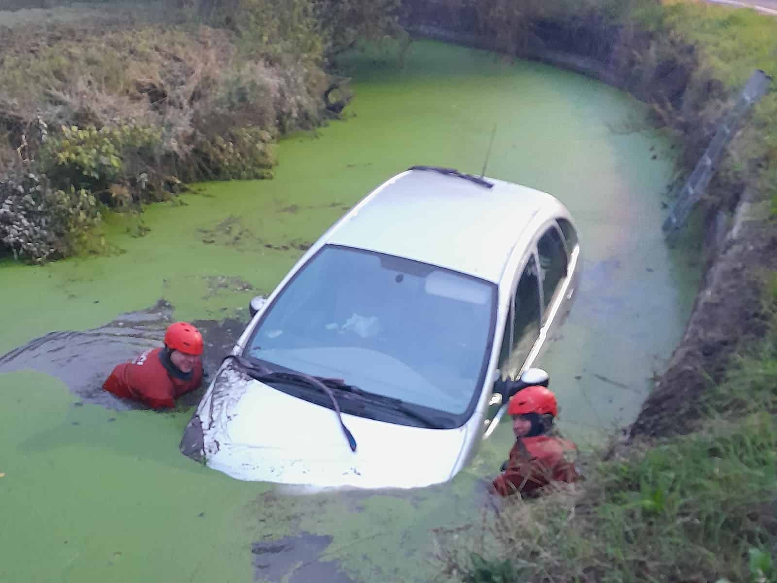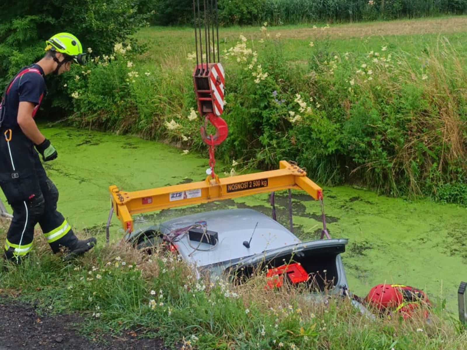 Auto skončilo ve vodě, řidič vyvázl jen s lehkým šokem