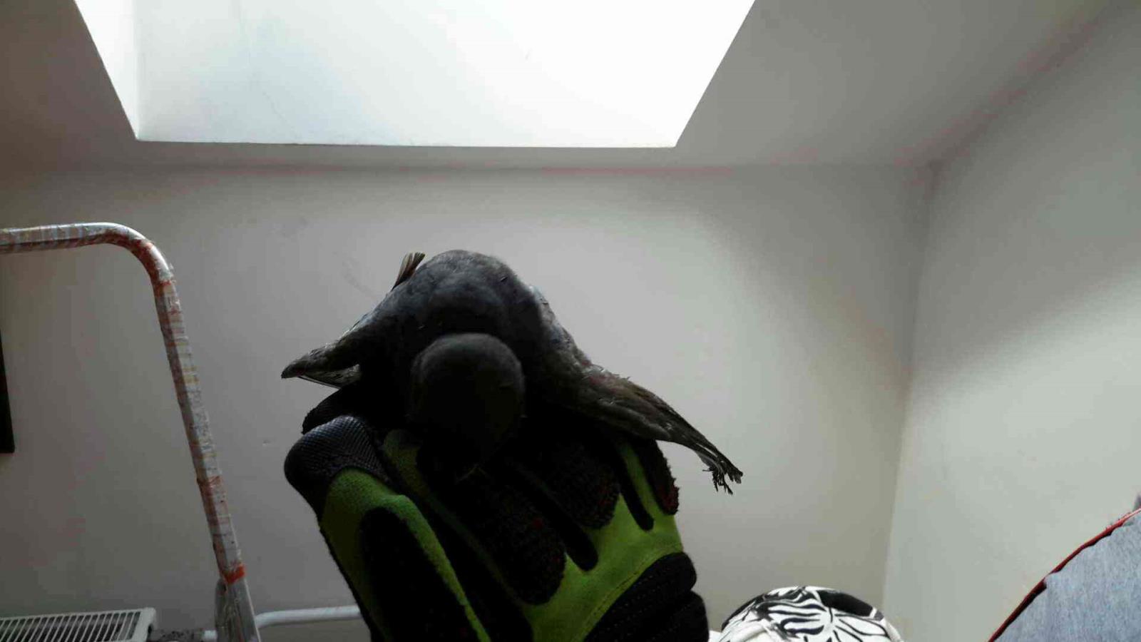 Rorýs měl omotaný vlasec okolo hlavy, zůstal uvězněn pod střechou domu.
