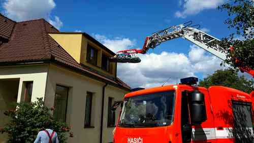 Muže nebylo možné snést z prvního patra dolů po schodišti. Velitel zásahu si vyžádal speciální výškovou techniku ze Školního a výcvikového zařízení HZS ČR v Brně.