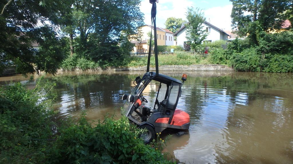 Aby mohli hasiči traktor z vody vylovit, povolali na místo vyprošťovací automobil s jeřábem z trutnovské stanice. Po 10. hodině už byl traktor venku na břehu a jednotka jej předala majiteli.
