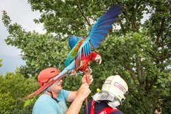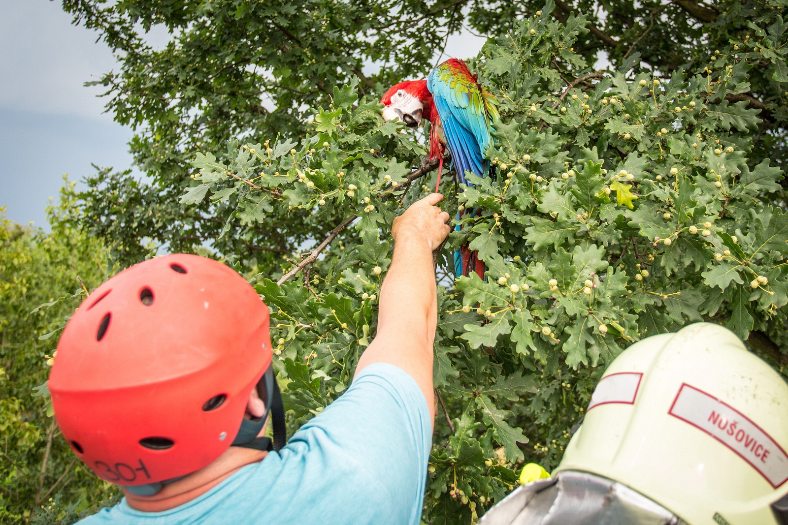 V neděli 26. července 2020 odpoledne zasahovali hasiči v Horních Domaslavicích, kde sundávali půlroční Aru zelenokřídlou ze vzrostlého dubu.