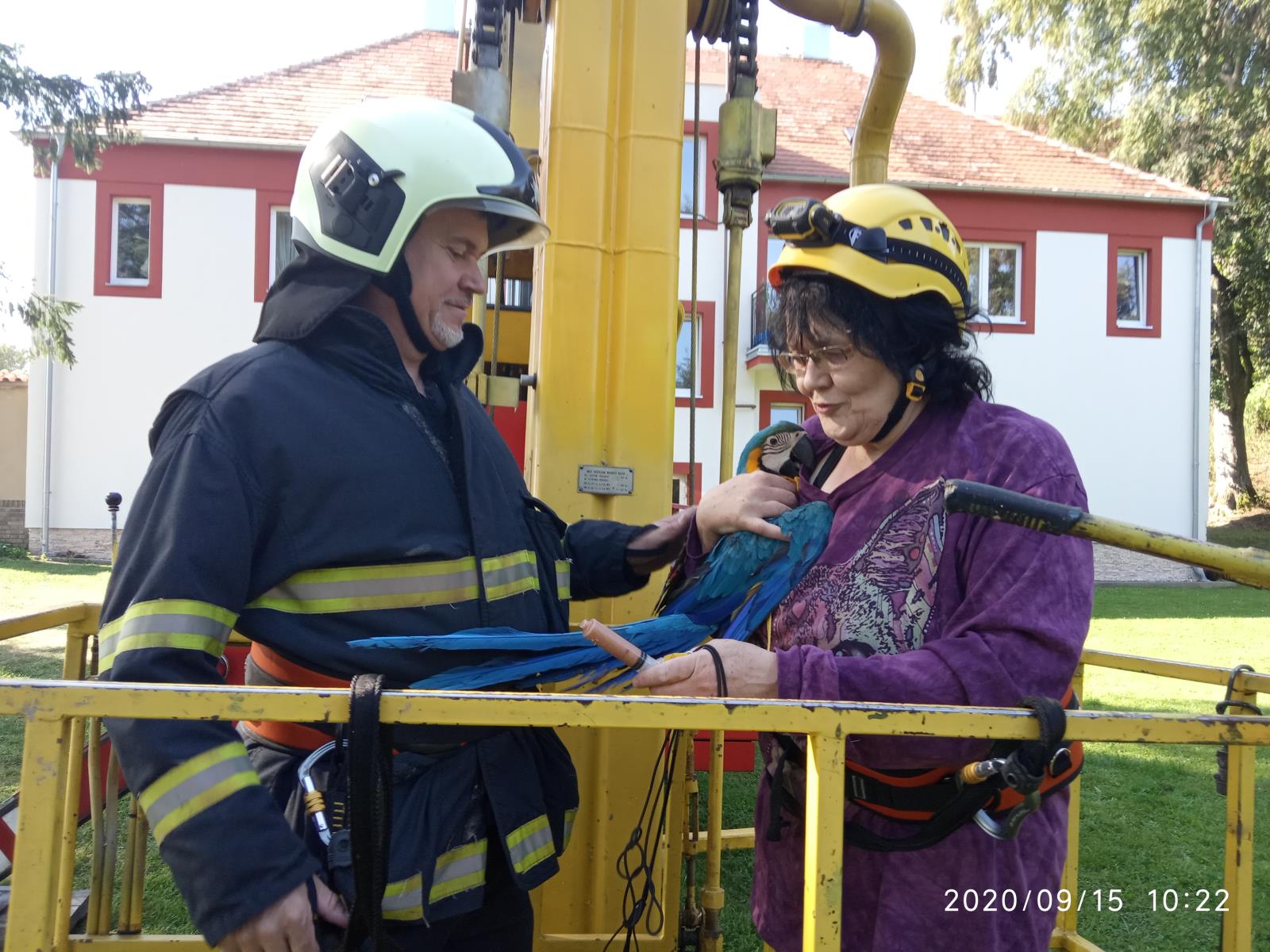 Osádka automobilové plošiny profesionálních hasičů ze strakonické stanice byla v úterý 15. září v 7:38 hodin vyslána do areálu léčebny ve Lnářích, kde uletěl vzácný papoušek.