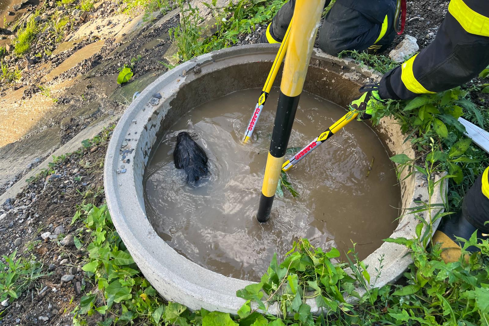 Hasiči, po příjezdu na místo události zjistili, že je jímka na zvíře opravdu příliš vysoká a bobr se tak ocitl v nepřekonatelné pasti. Ani hasiči se však nechtěli dostat do přímého kontaktu se zvířecími zuby či mrštným ocasem, vymysleli tak neotřelý záchranný postup.