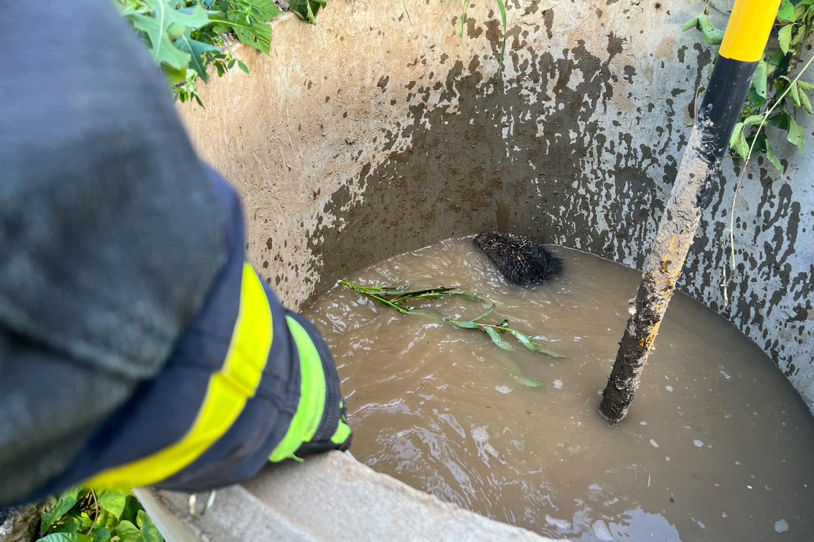 Profesionální hasiči ze stanice ve Frýdku-Místku zasahovali, v úterý 8.8.2023 v podvečer, při záchraně bobra, který se ocitl v jímce.