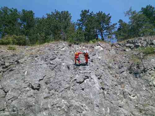 Záchrana psa na skalní stěně