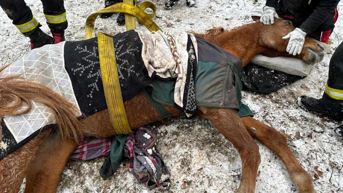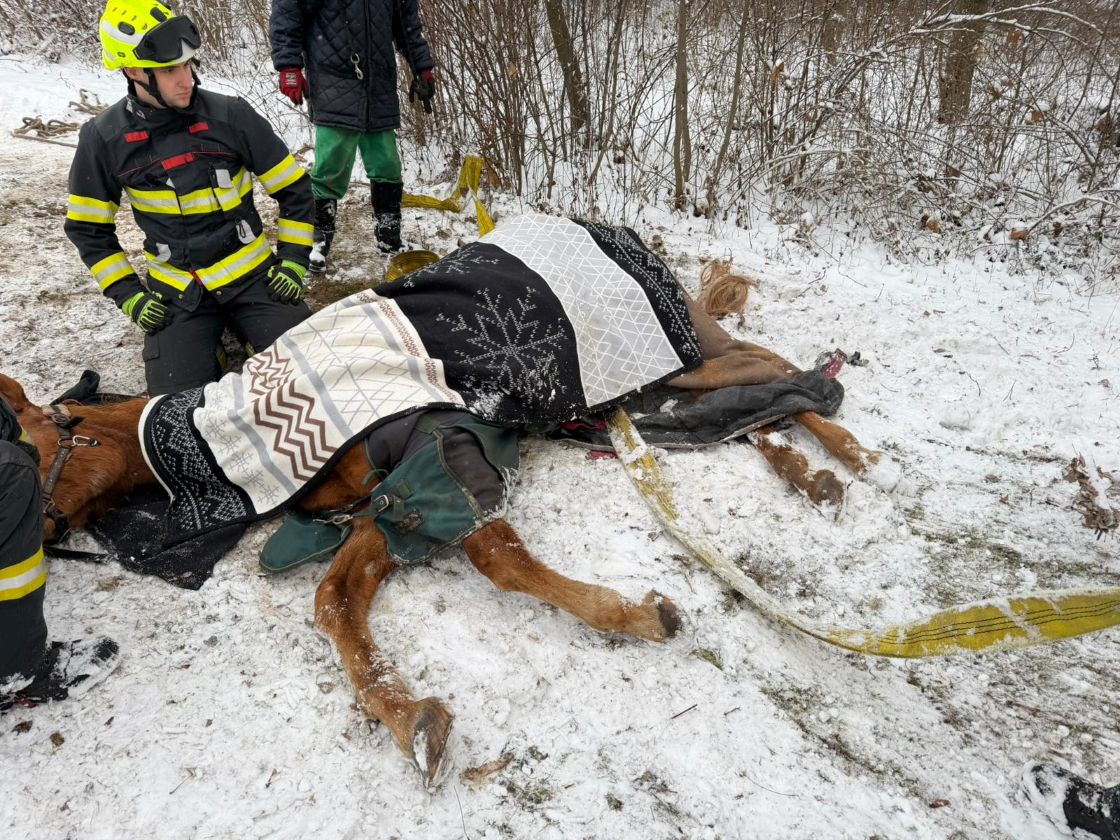Zásah hasičů pomohl zvířeti v ohrožení, kůň se nedokázal postavit