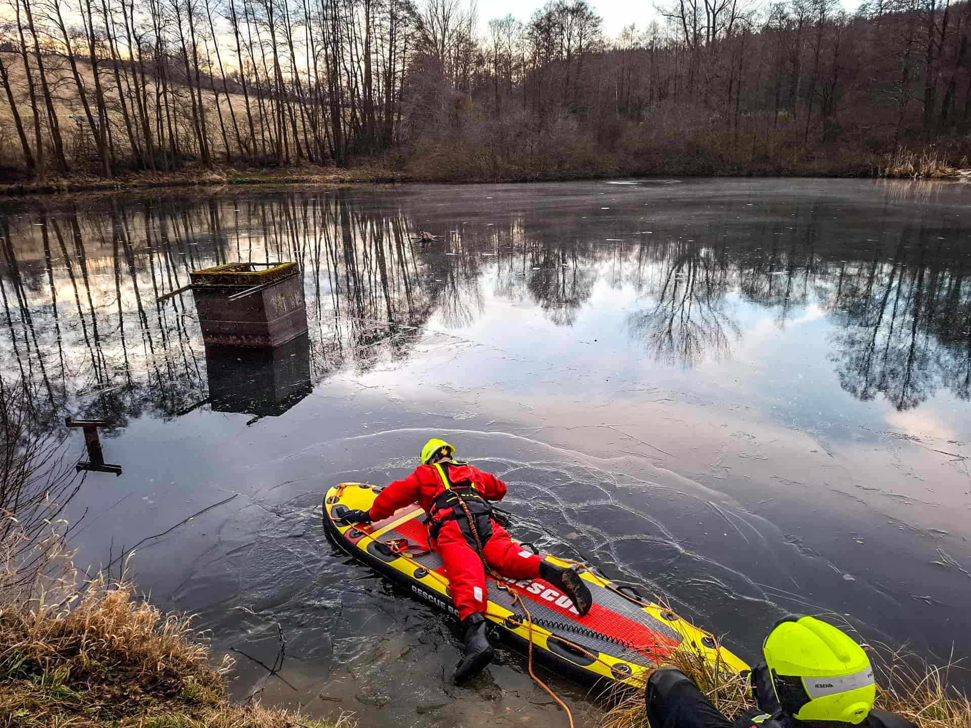 Nebezpečná situace na zamrzlé vodní ploše