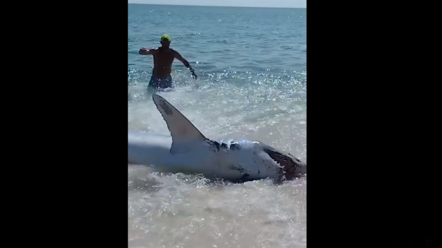 Žralok uvízl na pláži na Floridě