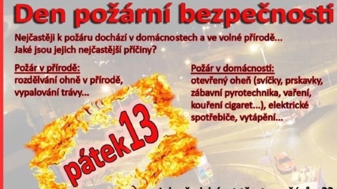 Pátek třináctého je všeobecně považován za nešťastný den. Pověře o smolném dni minimálně ve skrytu duše věří snad většina z nás. Hasiči v celé České republice se ale každoročně snaží tuto pověru vyvrátit. Česká asociace hasičských důstojníků vyhlašuje vždy právě na tento den „Den požární bezpečnosti“.