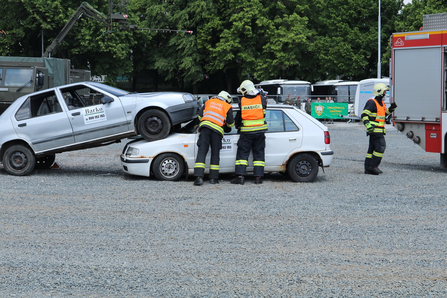 Jednotky profesionálních i dobrovolných hasičů z Jihomoravského kraje předvedou názornou ukázku, jak vypadá výcvik jednotek ve vyprošťování zraněných osob z havarovaných vozidel.