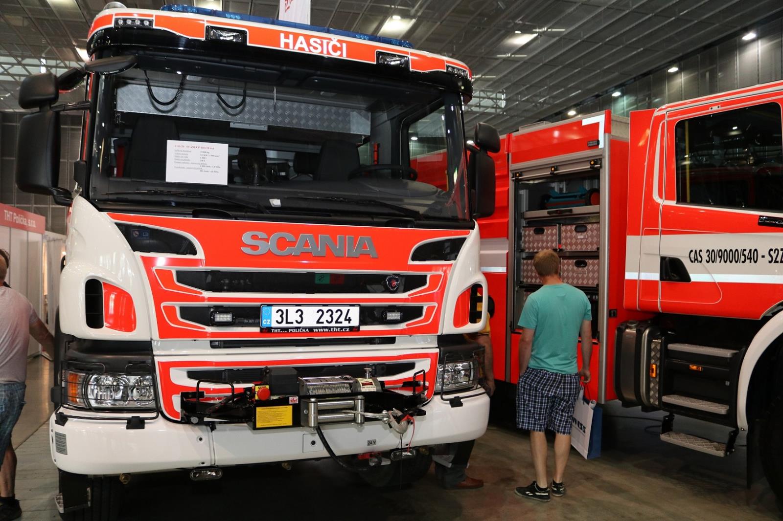 Milovníci hasičské techniky se mohou těšit na celou řadu novinek – například na mobilní chemickou laboratoř nebo chemický kontejner s ukázkou stanoviště dekontaminace.