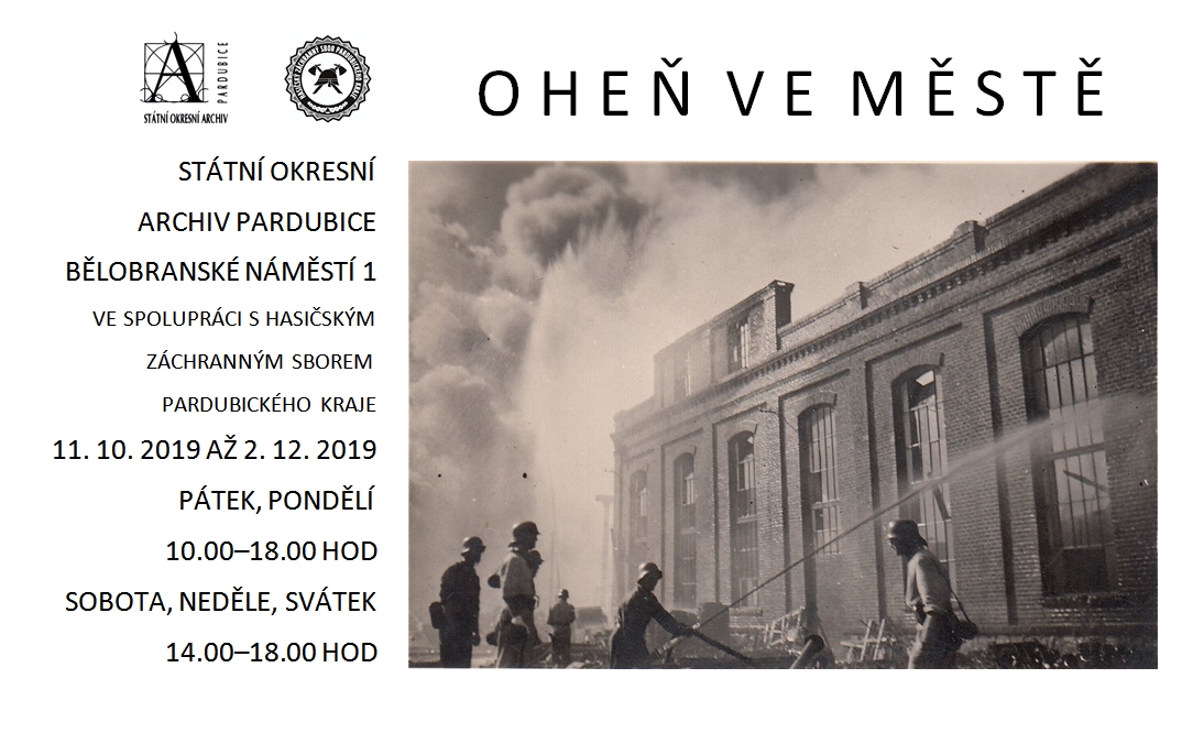 Státní okresní archiv Pardubice ve spolupráci s Hasičským záchranným sborem Pardubického kraje zve občany a návštěvníky Pardubic na svoji tradiční podzimní výstavu. Letošní téma „Oheň ve městě“ volně navazuje na úspěšnou výstavu „Voda ve městě“ z roku 2014 a představí tentokrát roli, jakou v minulosti ve vývoji města a v životě jeho obyvatel sehrál oheň.